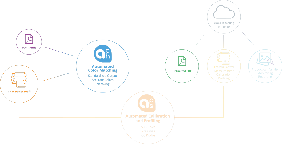 Alwan ColorHub, industry-leading color management server since 2004 and InterTech Award® recipient in 2008 offers a unique ICC-based Dynamic Color Management making any 4 colors to 7 colors output device print better quality images and more accurate colors while using less ink than ever before.